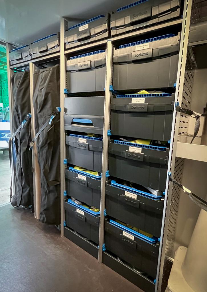 ,,De CPV materiaalwagen is nu voorzien van een doordachte Sortimo Globelyst 4 indeling, waarbij alle inzetmaterialen overzichtelijk zijn opgeslagen waarmee een snelle inzet mogelijk is. Daarnaast is de materiaalwagen uitgerust met een stroomvoorziening van Victron Energy. Uitgevoerd met een EasySolar, zonnepanelen en een 12 Volt accu”, legt Verbruggen uit.